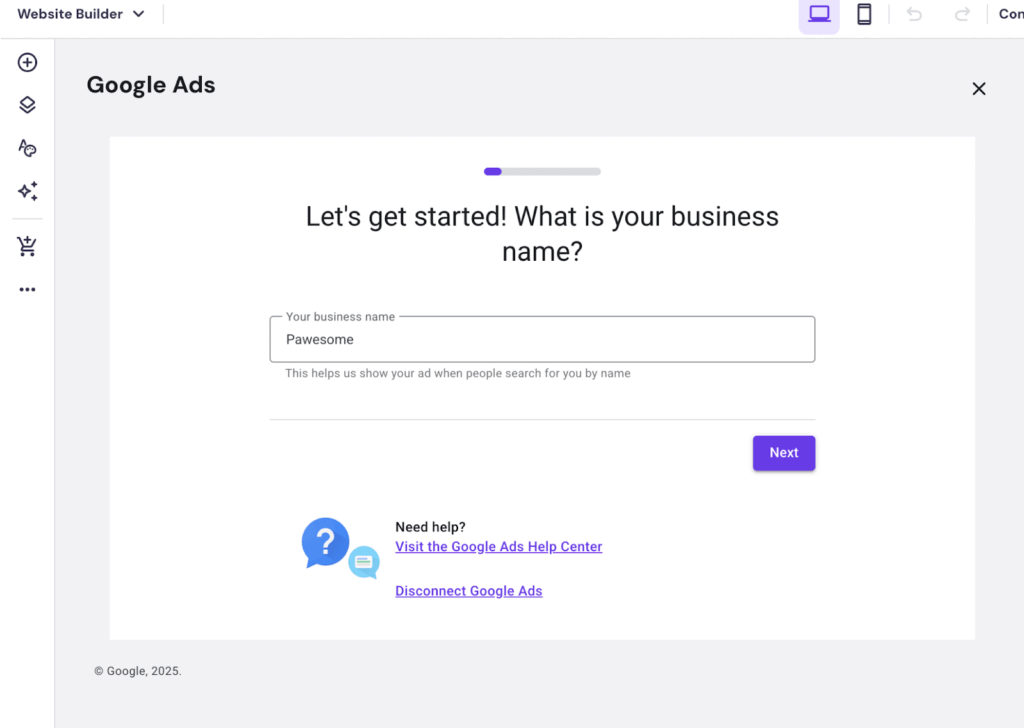 Enter your business or brand name as you want it to appear in the Ad, then click next.
